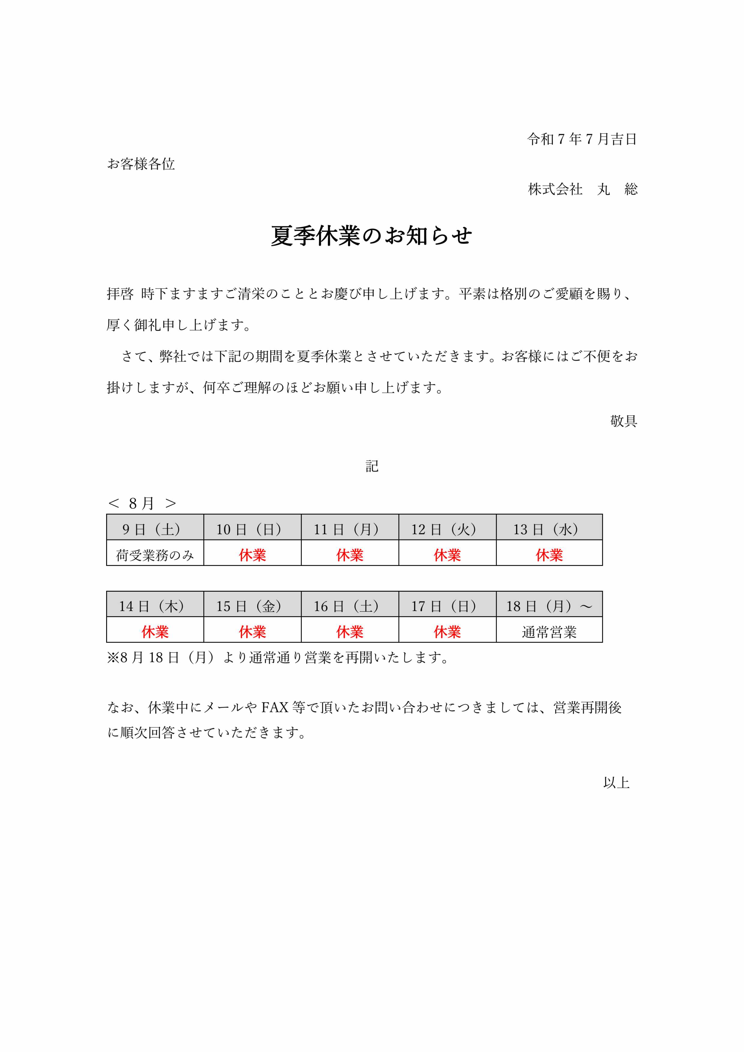 令和8年も本年同様お客様にご満足いただけるよう